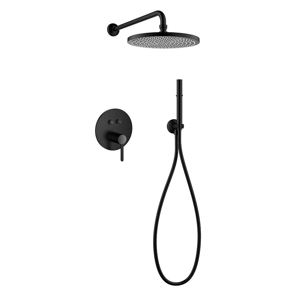 встраиваемый смеситель с кнопочным управлением, верхний душ диаметр 25 см, ручной душ со шлангом, штуцером и держателем